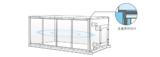 整機箱體的防冷橋系數(shù)滿足歐洲空氣處理機組標(biāo)準EN1886的TB2級要求,防凝露效果出色,氣密性好。